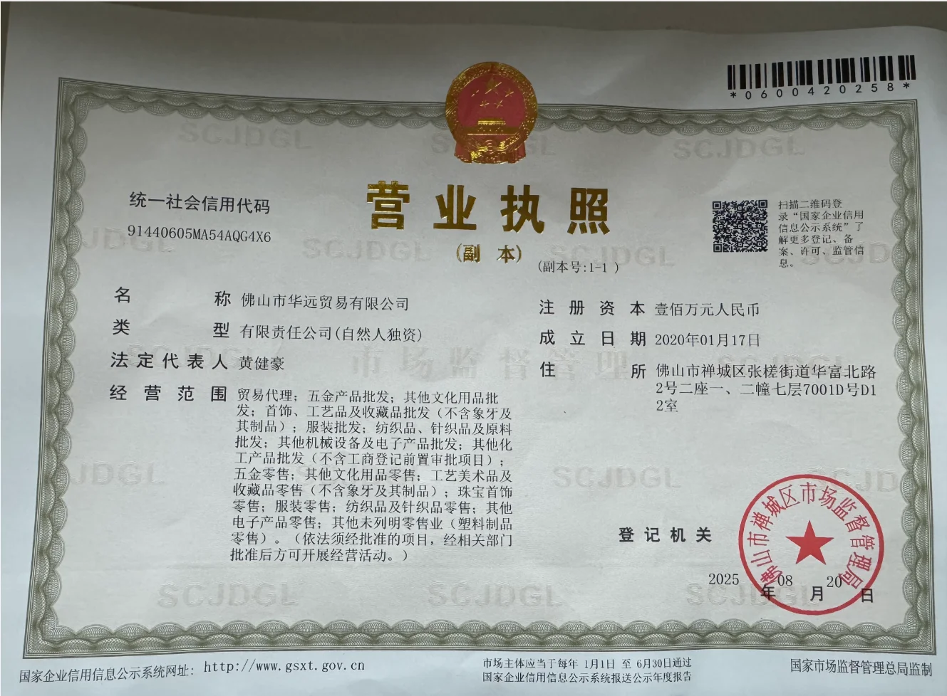 Company Name : Foshan Huayuan Trading Co., Ltd.